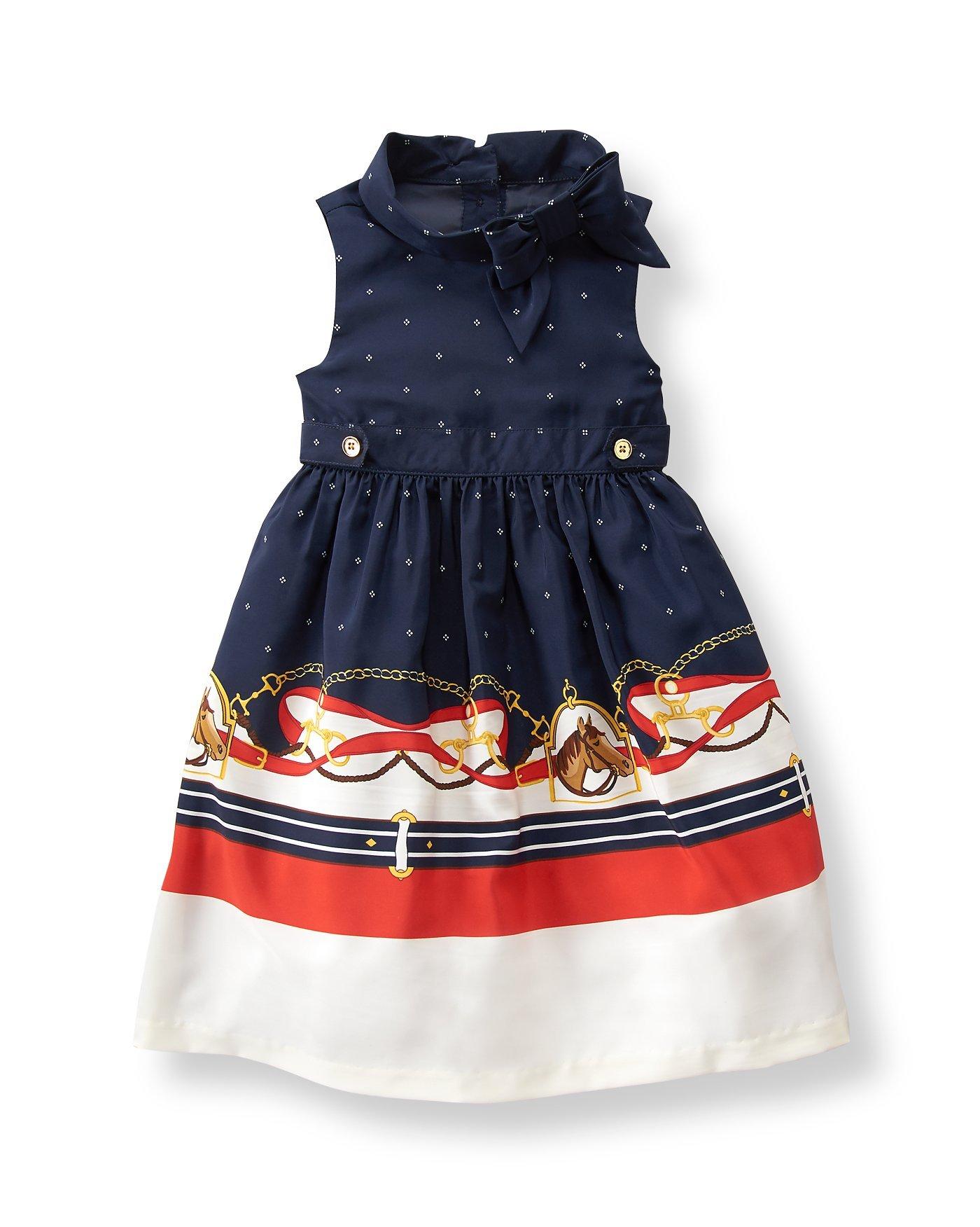 Girl Navy Horse Scarf Border Dress By Janie And Jack
