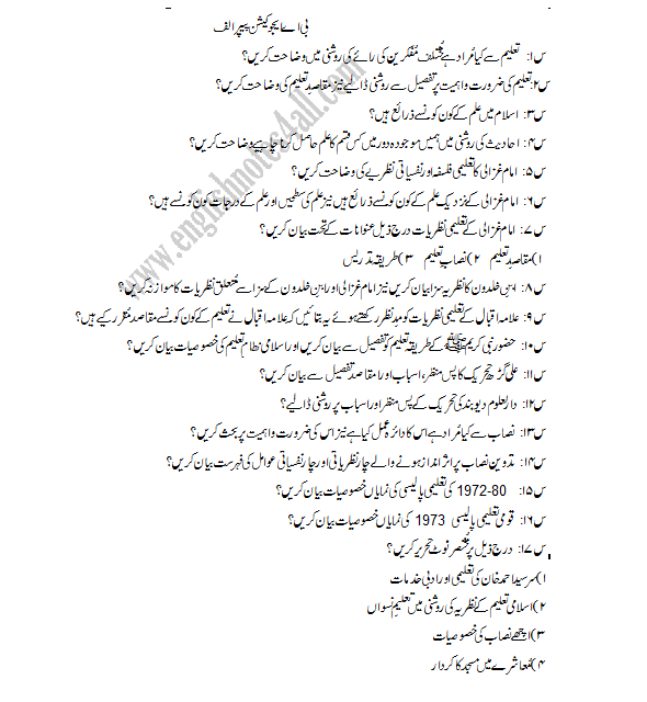 Islamic Studies Compulsory Islamiat Code 416 Guess Paper Ba Autumn 2013