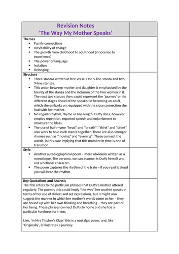 Carol Ann Duffy The Way My Mother Speaks Analysis N5 And Higher English Teaching Resources