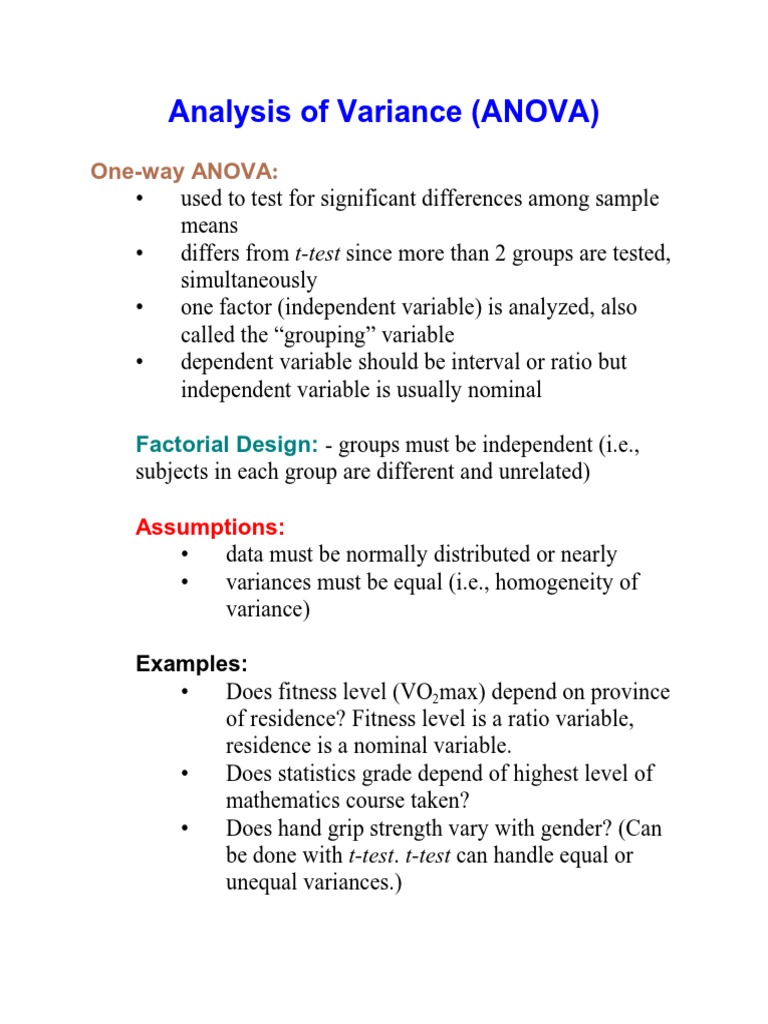 Analysis Of Variance Anova