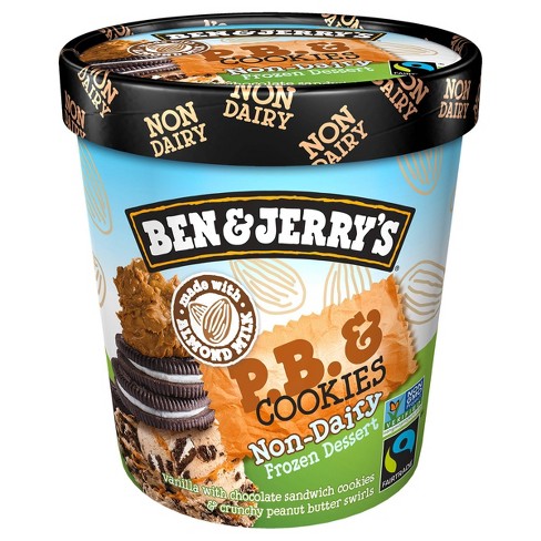 Ben Jerry S Non Dairy Frozen Dessert Non Gmo Fairtrade 100 Certified Vegan Made With Almond Milk Responsibly Sourced Packaging P B Cookies Pint 8 Count Amazon Com Grocery Gourmet Food